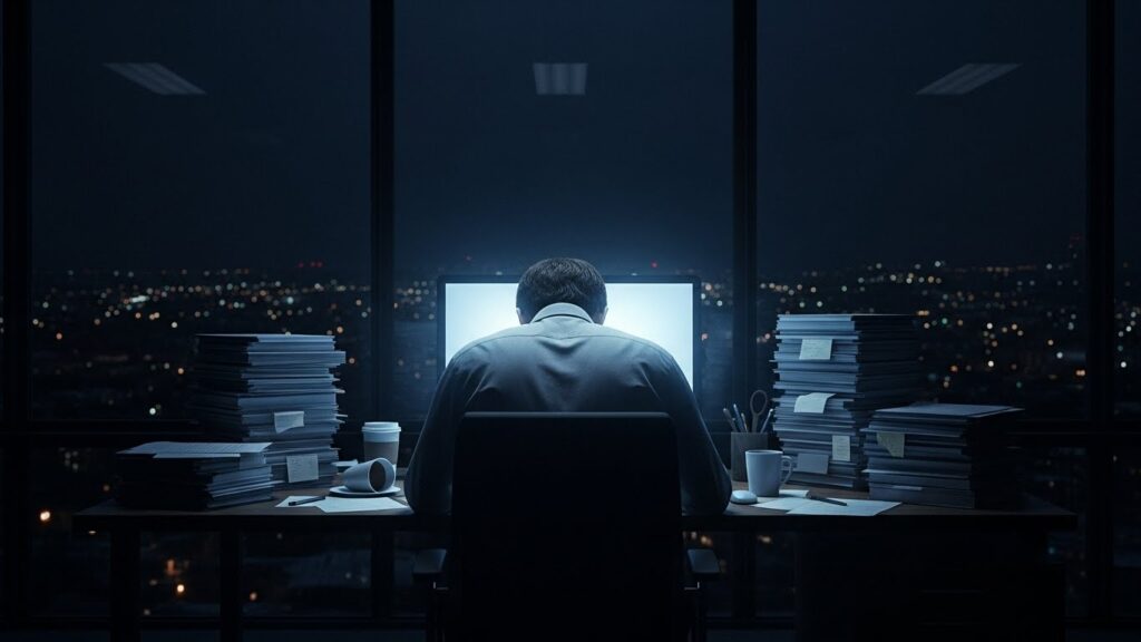 남들 다 퇴근한 텅 빈 사무실에서